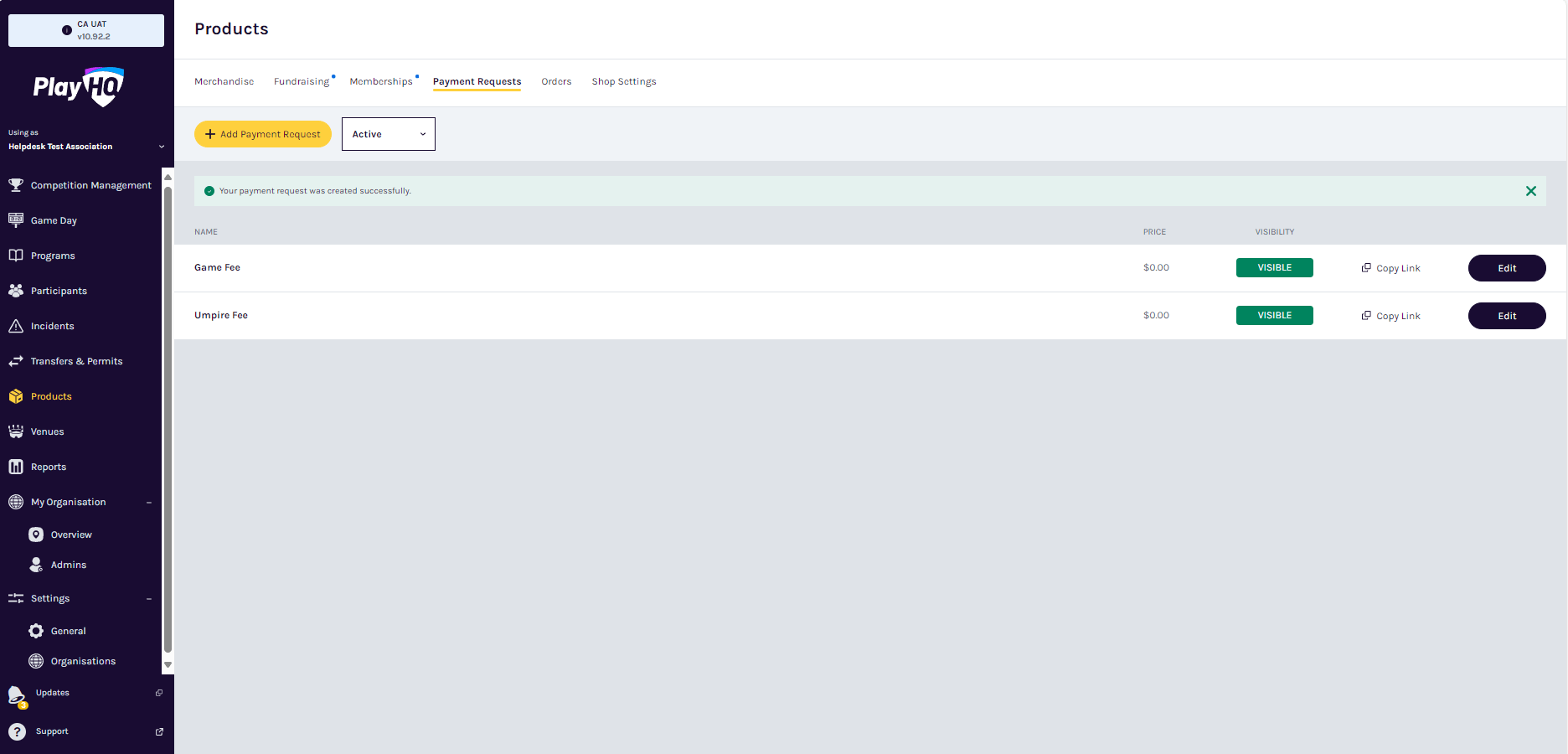 Payment Requests Play Cricket Support